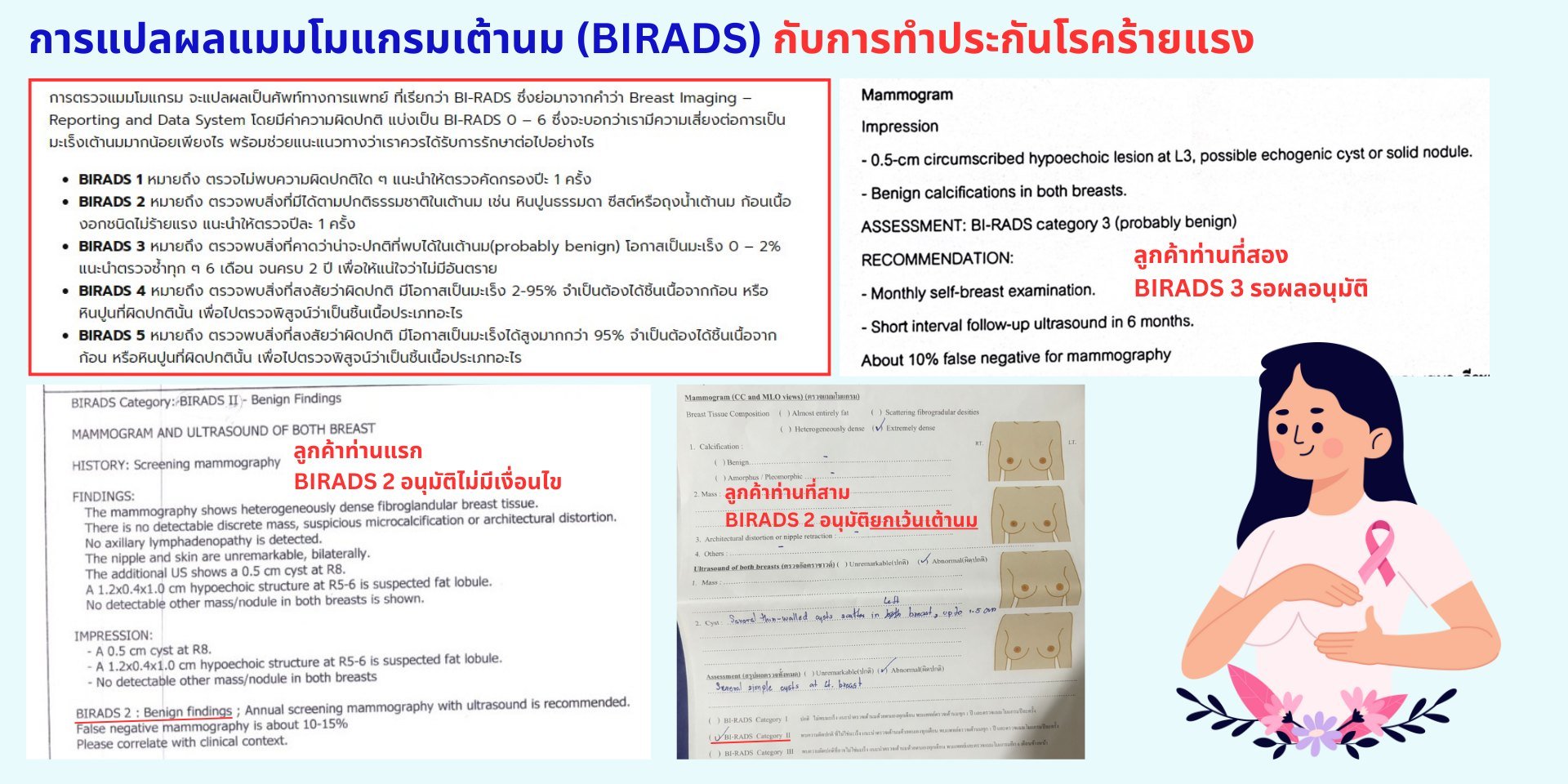 BIRADS 1 ประกันสุขภาพและประกันโรคร้ายแรงอนุมัติไม่มีเงื่อนไข