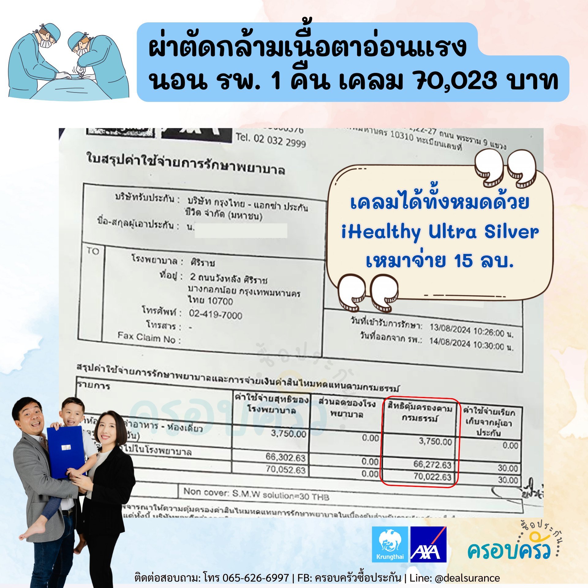 #ผ่าตัดกล้ามเนื้อตาอ่อนแรง รักษาที่โรงพยาบาลศิริราช ไม่ต้องสำรองจ่าย เคลม 70,023 บาท ได้ทั้งหมด ด้วยแบบประกันเหมาจ่าย iHealthy จากกรุงไทยแอกซ่า