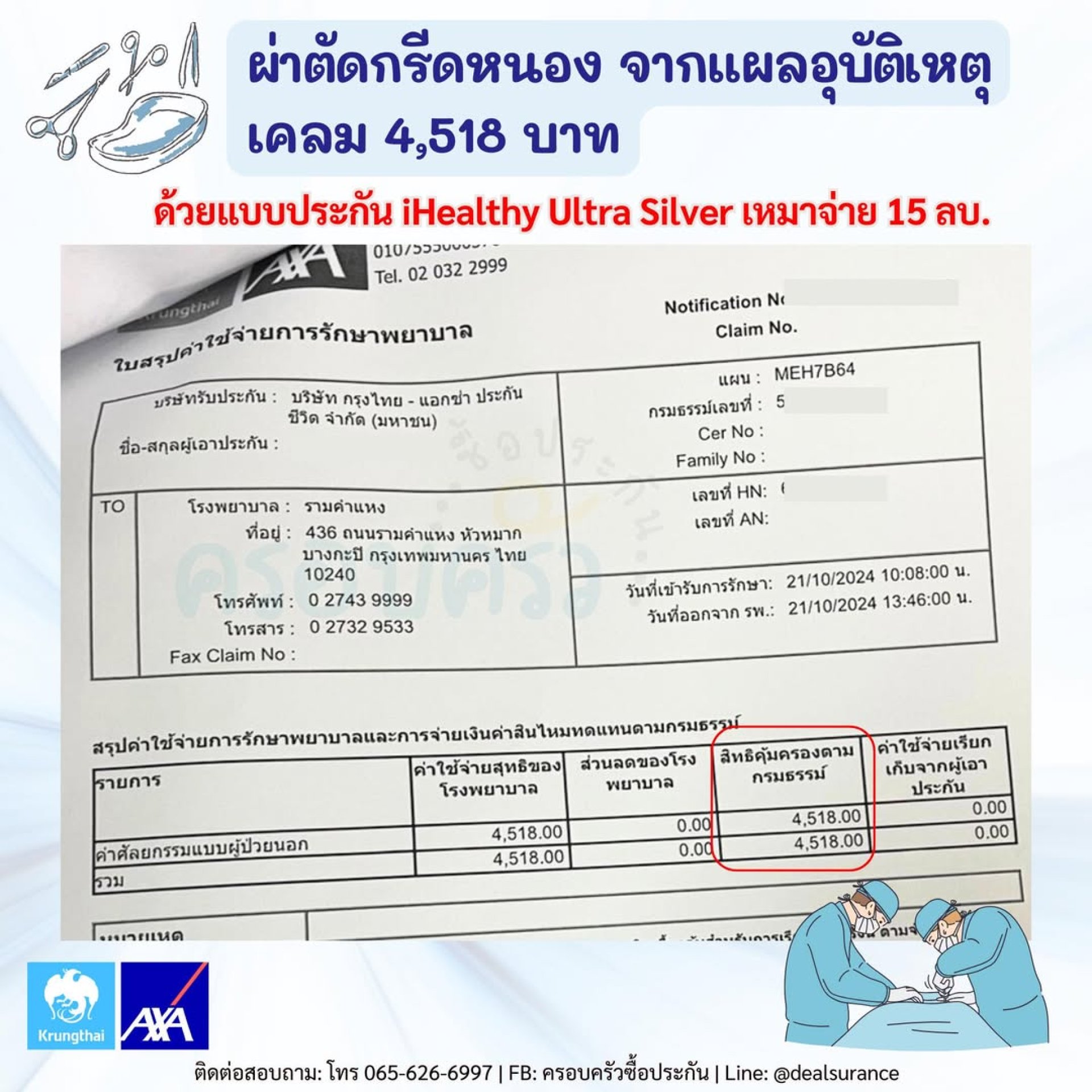 #ผ่าตัดกรีดหนอง จากแผลอุบัติเหตุเมื่อกลางปี เคลมได้ทั้งหมดด้วยแบบ #ประกันสุขภาพเหมาจ่าย #iHealthyUltra