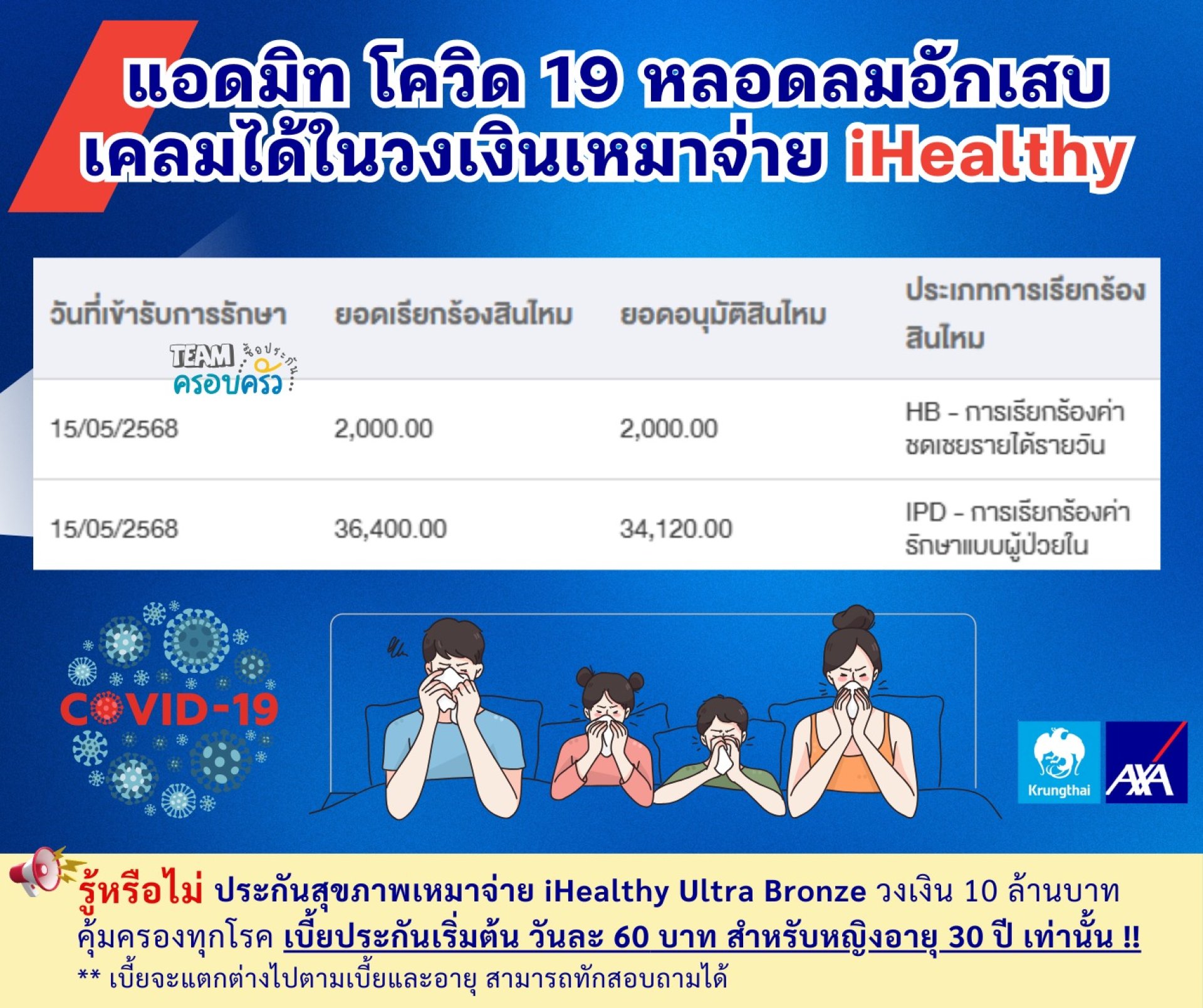 ประกอบกับไข้สูงมาก นอนรักษาตัว โรงพยาบาล 2 คืน เคลมได้ทั้งหมด 34,120 บาท
